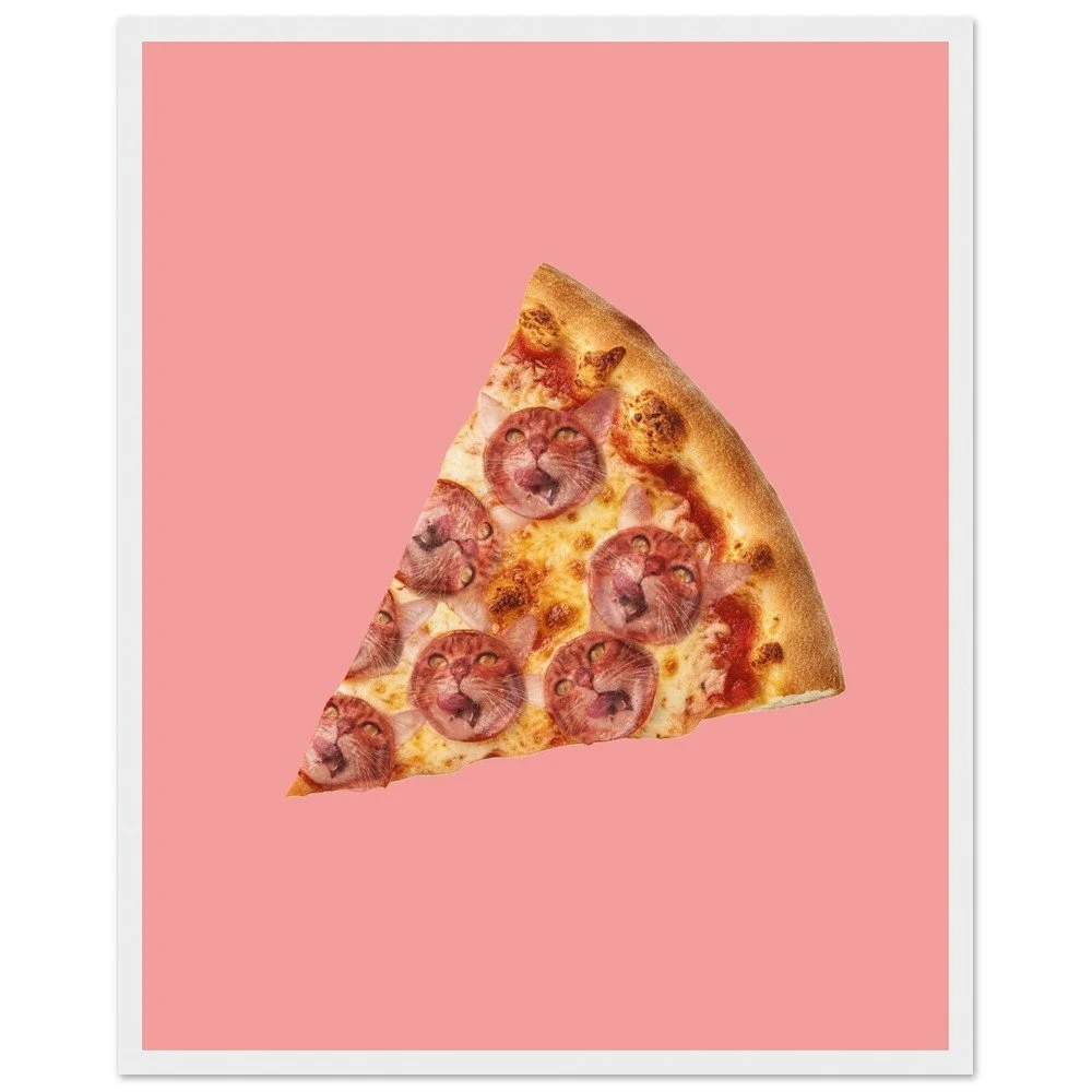 Classic Italian pizza. Now with cat pepperoni. Obviously. For the people who love pizza, cats, and the completely natural combination of both. An original collage design from Madrid.